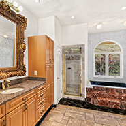 - Master suite includes fireplace, gigantic dual bath, multiple closets, jetted tub